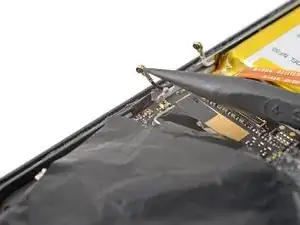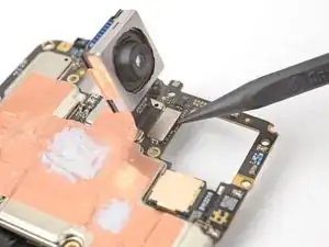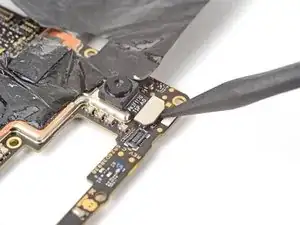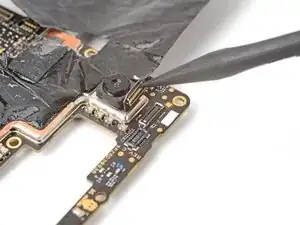 Используйте пинцет, чтобы отогнуть ленту, соединяющую камеру с материнской платой.