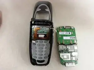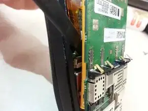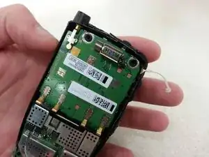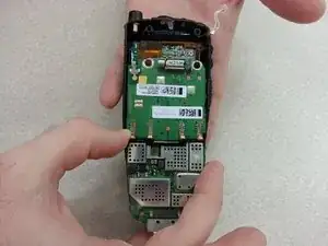 Снимите материнскую плату, крепко захватив её края одной рукой и сам телефон другой, слегка приподнимая плату, а затем потянув её прямо вниз в направлении нижней части телефона.