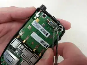 Пинцетом крепко захватите разъём в верхней части телефона и потяните разъём прямо от телефона.