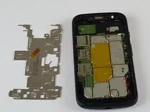 Теперь, когда дисплей снят, снимите алюминиевую защитную пластину с материнской платы.