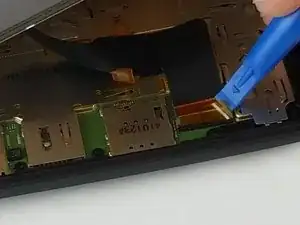 Наконец, сдвиньте кабель дисплея с разъёма. Он должен легко сойти, если нет — убедитесь, что чёрный фиксатор полностью отщёлкнут.