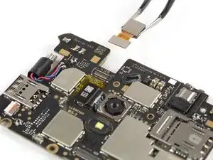 Снимите фронтальную камеру пинцетом.