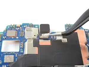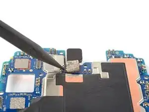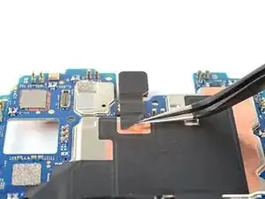 Отогните графитовую тепловую плёнку от аккумулятора, чтобы открыть нижнюю секцию платы.