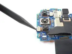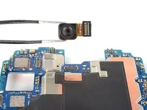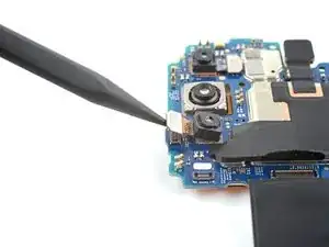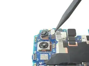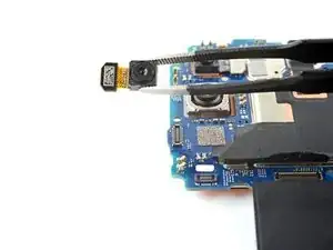 Используйте пинцет, чтобы отклеить ленту, соединяющую фронтальную камеру с платой.