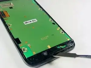 Примените пластиковый инструмент для открытия на краю экрана рядом с передней камерой.