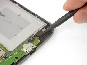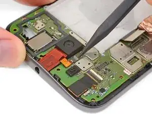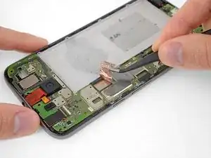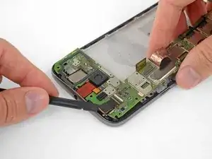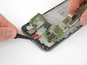 В этот момент возможно отсоединить разъём наушников, вытащив его оранжевый гибкий кабель из ZIF-гнезда, но кабель легко порвать при неаккуратных действиях. Для более надёжного способа продолжайте выполнение следующих шагов.