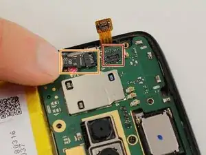 С помощью ногтя или пинцета вытяните оранжевый разъём в рамке. В отличие от других разъёмов, этот вытягивается вниз, а не вверх относительно устройства.