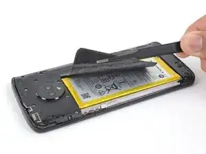 Используйте пинцет, чтобы аккуратно отщёлкнуть чёрную ленту, покрывающую аккумулятор.