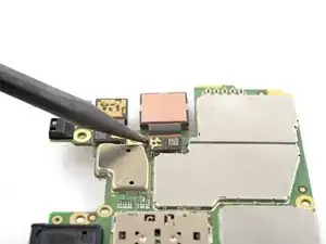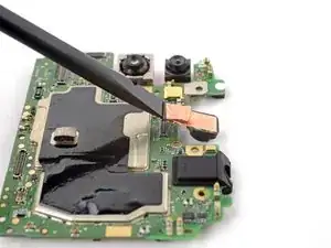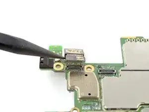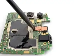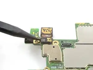 Поднимите нижний край материнской платы и потяните вниз по корпусу телефона, чтобы извлечь её.