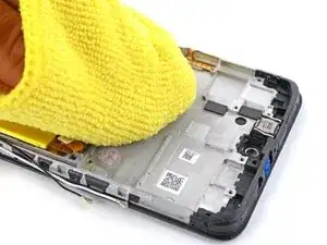 Очистите старую термопасту с средней рамы и материнской платы при помощи изопропилового спирта и микрофибры. Нанесите новую термопасту перед сборкой.