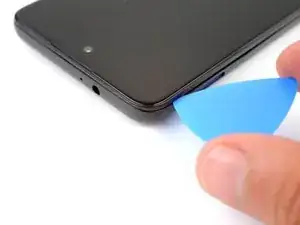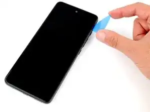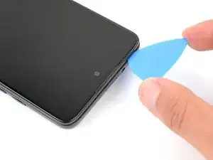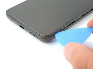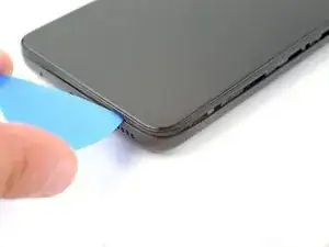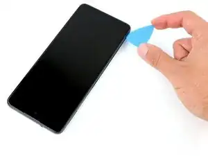 Вставьте кончик клина в небольшой зазор между задней крышкой и дисплеем.