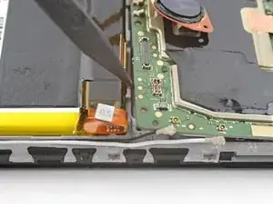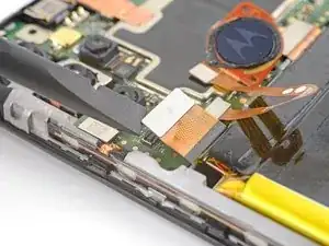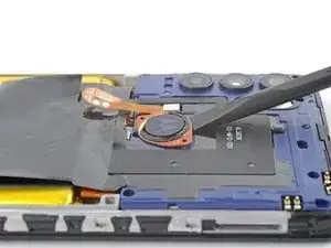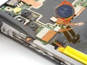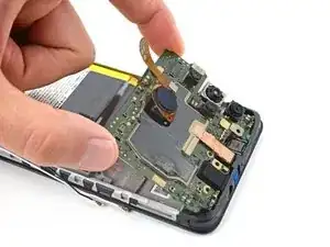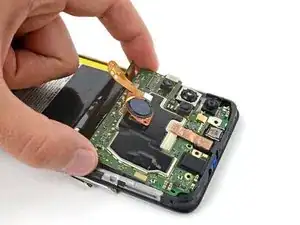 Пока не пытайтесь извлекать датчик отпечатков пальцев, так как он всё ещё соединён с материнской платой гибким шлейфом.