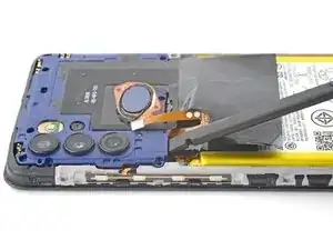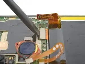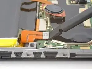 Используйте острый конец лопатки, чтобы поддеть и отключить контактную колодку сенсора отпечатков пальцев.