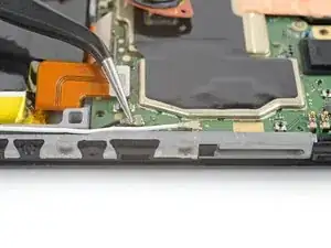 Двигайте крышку материнской платы вверх по корпусу телефона, чтобы снять её.