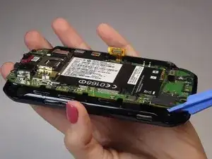 Будьте осторожны при удалении материнской платы. У динамика есть соединения с маленькими проводами и клеем. Используйте тонкий инструмент, чтобы осторожно отделить его перед удалением материнской платы.