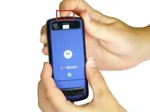 Нажмите кнопку разблокировки панели на верхней части телефона и одновременно оттяните заднюю панель от корпуса телефона.