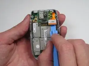 Отделите фронтальный шлейф от платы с помощью пластикового инструмента для открытия.