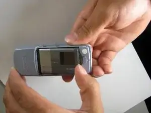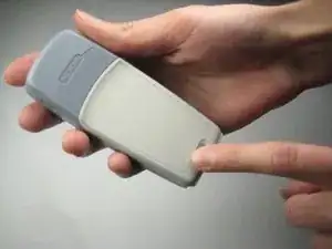 Нажмите на маленькую серую кнопку, расположенную на задней панели телефона.