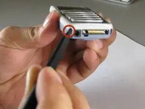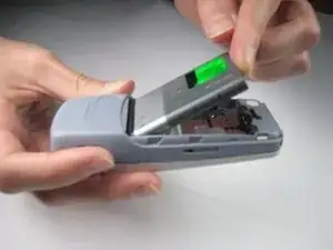 Затем поместите большой палец в выемку под аккумулятором и поднимите аккумулятор вверх и наружу.