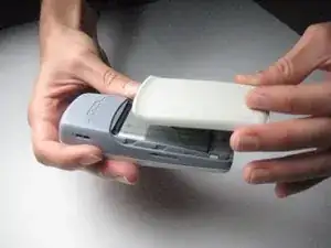Чтобы извлечь аккумулятор, сначала держите телефон боком.