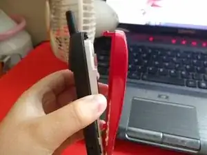 Найдите зазор в верхней части телефона и нажмите вниз ногтем или плоским концом лопатки