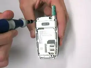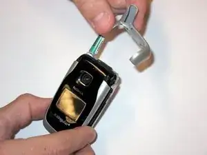 Используйте пластиковый инструмент для открытия, чтобы снять серебряную крышку над антенной.
