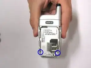 Используя отвертку с головкой T-6 размером .208, удалите два винта в нижней части отсека для аккумулятора.