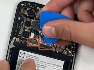 Подденьте медиатором для вскрытия или лопаткой край двух защёлкивающихся разъёмов и поднимите строго вверх, чтобы их отключить.