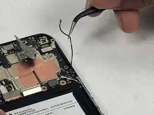Используйте пинцет, чтобы отвести белый коаксиальный разъём от платы.