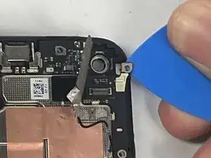 Подденьте лопатку или инструмент для вскрытия под край разъёма и поднимите строго вверх, чтобы отключить фронтальную камеру от материнской платы.