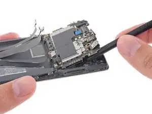 Кнопки громкости и питания припаяны к материнской плате и должны быть сняты вместе с ней. Чтобы упростить процесс, аккуратно подденьте кнопки перед извлечением платы.