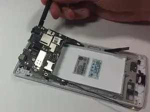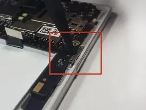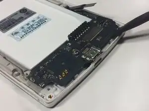 Начните со сторон нижней платы, ближайших к разъёму зарядки. Аккуратно подденьте плату, пока она полностью не отсоединится от телефона.