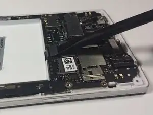 Используйте лопатку, чтобы осторожно поддеть и снять маленькую материнскую плату с телефона.