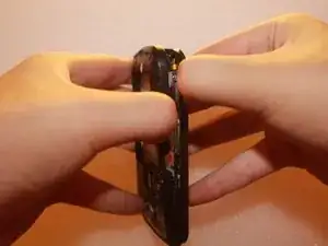 Найдите зазор между аккумулятором и остальной частью устройства.