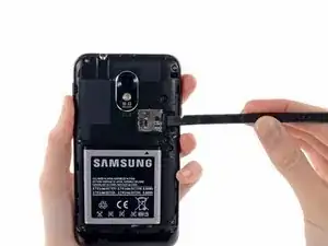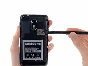 Надавите инструментом вниз, чтобы приподнять аккумулятор из посадочного места.