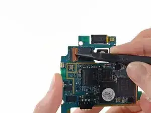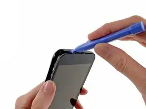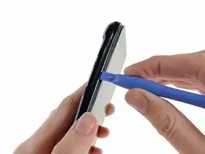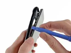 Вставьте пластиковый инструмент для вскрытия или ноготь в зазор рядом с левой стороной разъема для наушников.