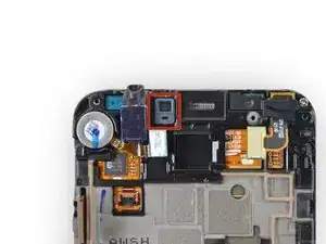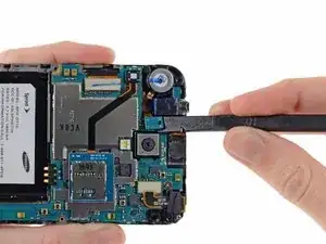 Используйте плоский конец лопатки, чтобы отсоединить разъем кабеля фронтальной камеры.