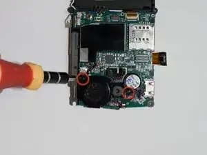Используя крестовую отвертку Phillips #00, выкрутите два винта 3,5 мм, которые крепят динамик к материнской плате.