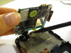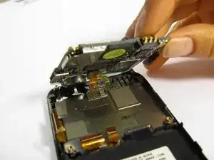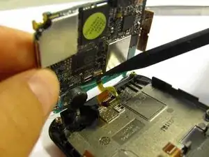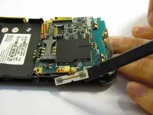 С помощью нейлоновой лопатки извлеките аккумулятор телефона.