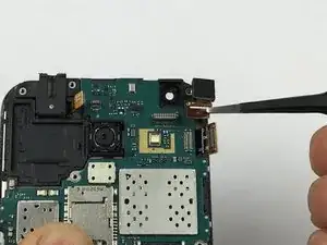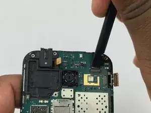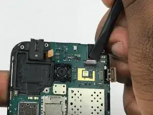 Используйте плоский конец лопатки, чтобы отключить разъём кабеля передней камеры.