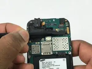 Используйте плоский край лопатки, чтобы отключить разъём динамика для уха.