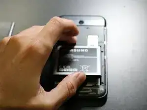 После снятия задней крышки найдите паз под правым нижним углом аккумулятора и выньте аккумулятор кончиком пальца.