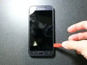 Медленно проведите другим инструментом для поддевания по всем кромкам телефона, чтобы разорвать соединение клея с дисплеем.