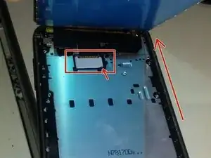 Подденьте оголенный разъем ленточного кабеля и отсоедините дисплей от устройства.