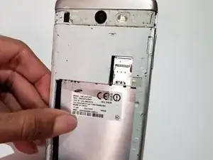 Вставьте ноготь в слот для снятия задней крышки и аккуратно потяните назад до тех пор, пока крышка не отсоединится.