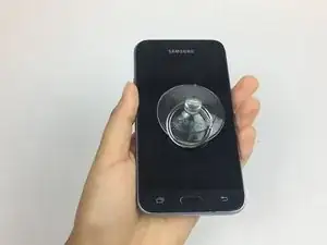Поместите маленькую присоску в центр экрана и сильно прижмите.