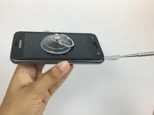 Держите заднюю часть телефона и осторожно тяните за присоску, пока экран не начнёт изгибаться.