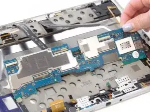 Поверните планшет на 180 градусов для этого шага, чтобы было проще добраться до материнской платы.