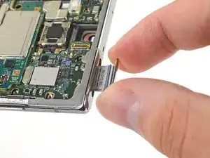 Используйте острый конец лопатки, чтобы отсоединить разъем боковой кнопки от материнской платы.
