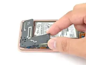 Осторожно потяните плату в сторону верхней части рамки, чтобы освободить слегка приклеенный порт USB-C.